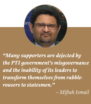 Unfortunately, Imran Khan runs his party and government arbitrarily and with arrogance. As such, he has failed to form a team of capable and experienced persons of integrity and has instead surrounded himself mostly with flatterers and yes-men who lack the courage to argue with him, much less make him see sense. This is nothing short of a disaster.