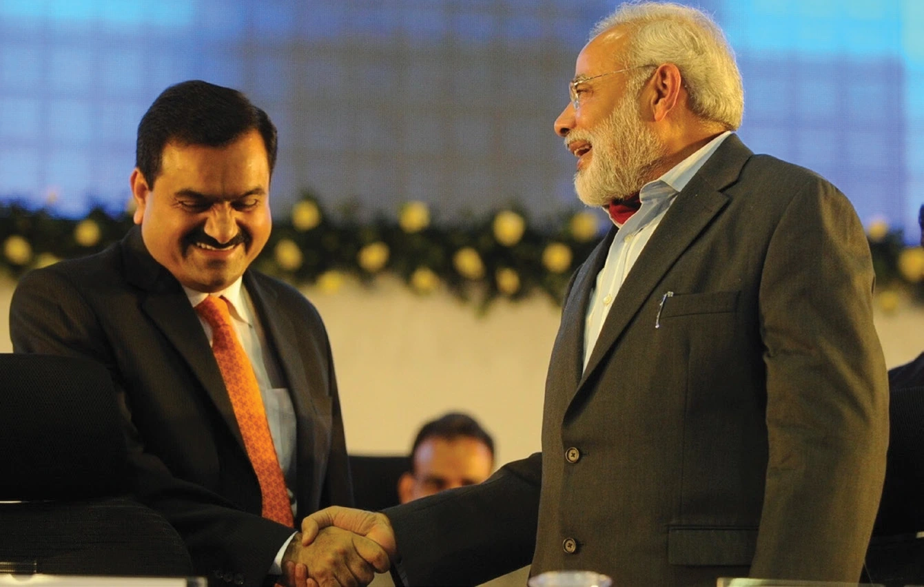 Narendra Modi shaking hands with Gautam Shantilal Adani.
