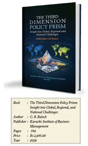 A valuable source of information and deep insights, the book ‘The Third Dimension Policy Prism: Insight into Global, Regional, and National Challenges’ by G. R. Baloch comprises 54 essays and is divided into 5 chapters, covering a wide spectrum of themes, including South Asian and Middle East regions, global politics, and numerous academic and social issues. The author, G. R. Baloch, is Pakistan’s former ambassador and currently serves as Director of the Global and Regional Studies Center (GRSC) at the Institute of Business Management (IoBM) in Karachi.